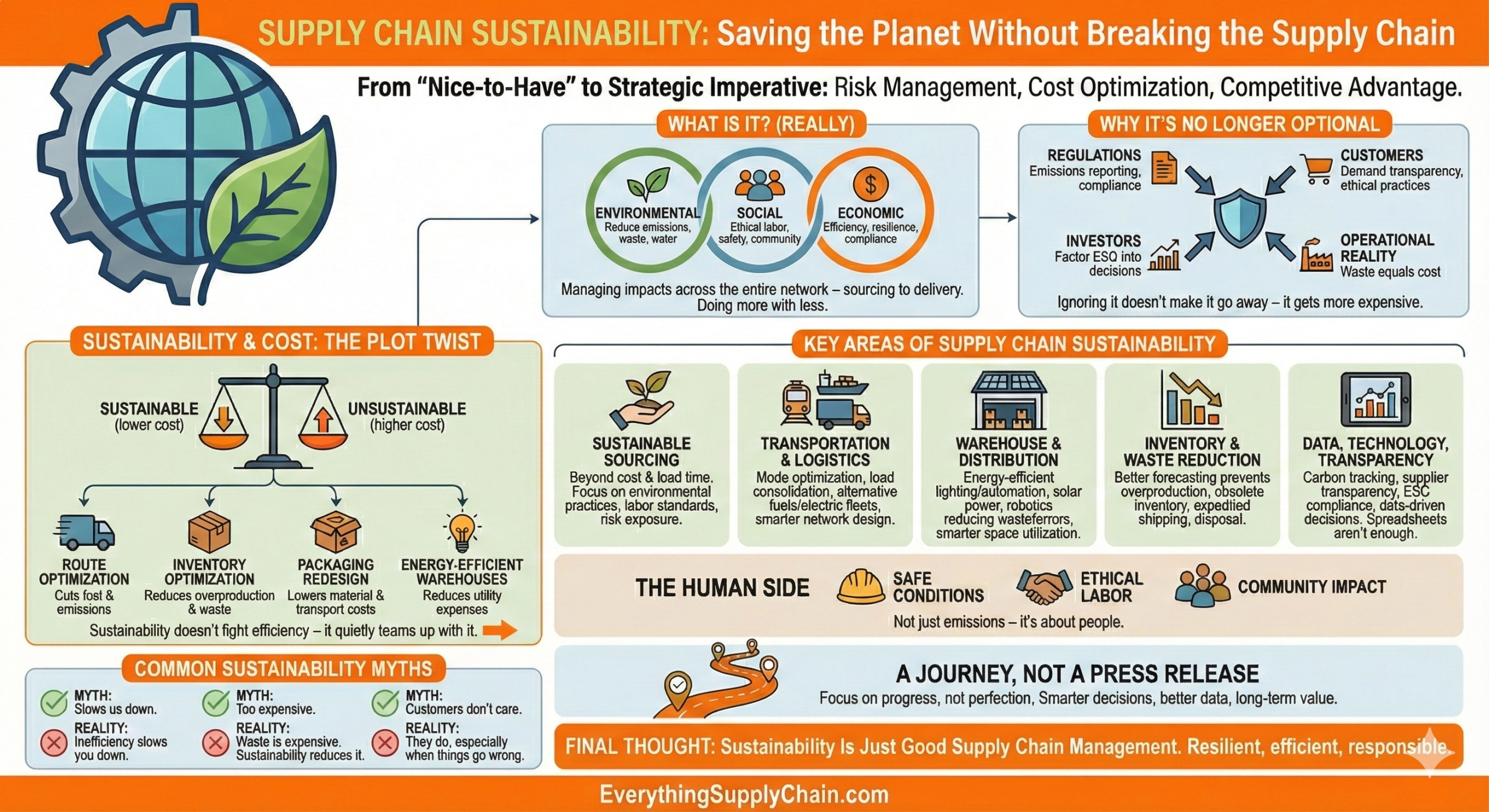 Sustainability is no longer a branding exercise. It’s a risk management strategy, cost optimization lever, and competitive advantage—all rolled into one. And despite popular belief, sustainable supply chains don’t require hugging trees in the warehouse (though morale might improve).